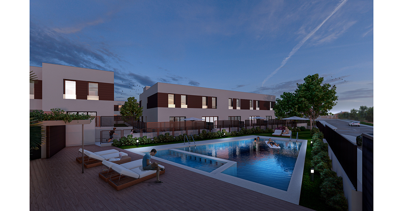 Culmia Maestral Rocafort está formada por dos conjuntos de 23 y 41 viviendas unifamiliares de 3, 4 y 5 dormitorios con terraza y jardín privado más piscina comunitaria.