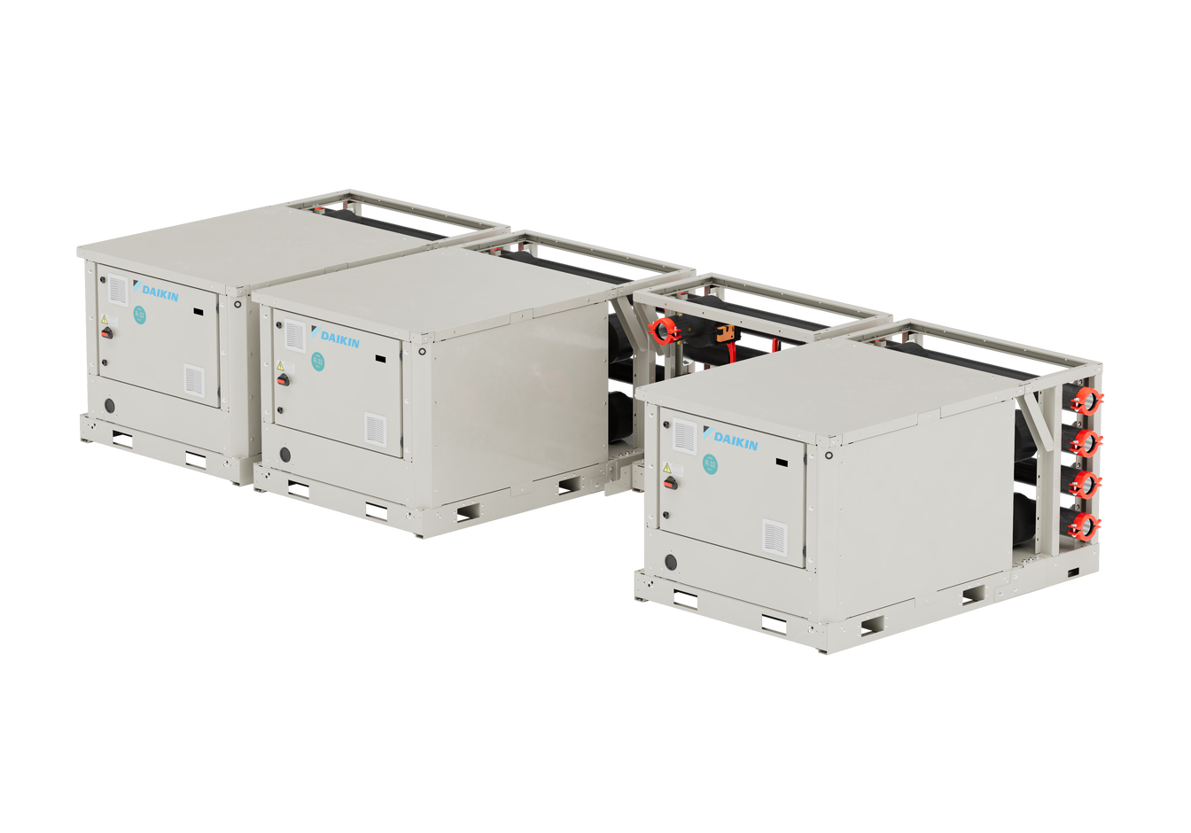 Compuesto de tres módulos con capacidades de 100, 125 y 160 kW, esta gama incorpora compresores scroll de Daikin y está disponible en dos versiones sonoras. También es posible añadir encapsulado lo que la convierte en una solución perfecta para aquellas aplicaciones que requieran instalación a la intemperie y además sean sensibles al ruido.