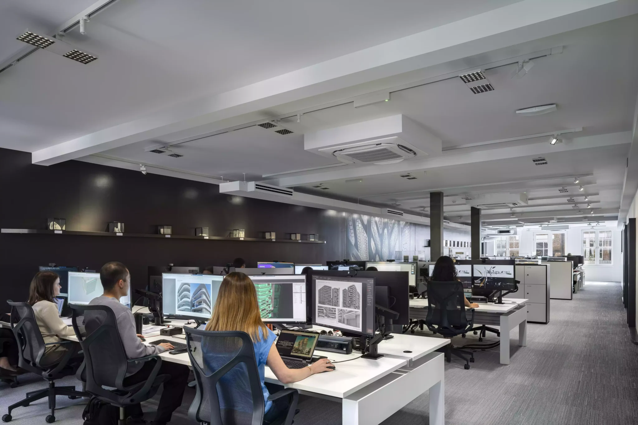 La iluminación de ERCO favorece el diseño adaptativo y el bienestar del personal en la oficina de Zaha Hadid Architects, que ha sido modernizada con visión de futuro