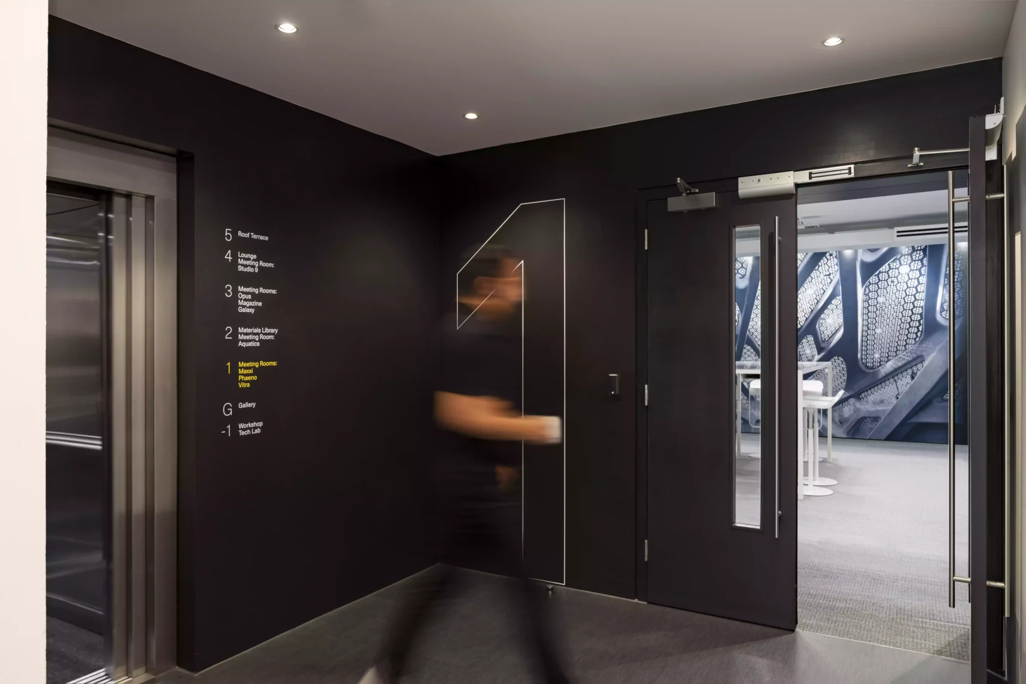Por otro lado, los proyectores Opton ofrecen una iluminación focalizada espectacular de los modelos y dibujos arquitectónicos que se encuentran repartidos por todo el edificio, como testimonio del impresionante repertorio de proyectos arquitectónicos que realiza ZHA.