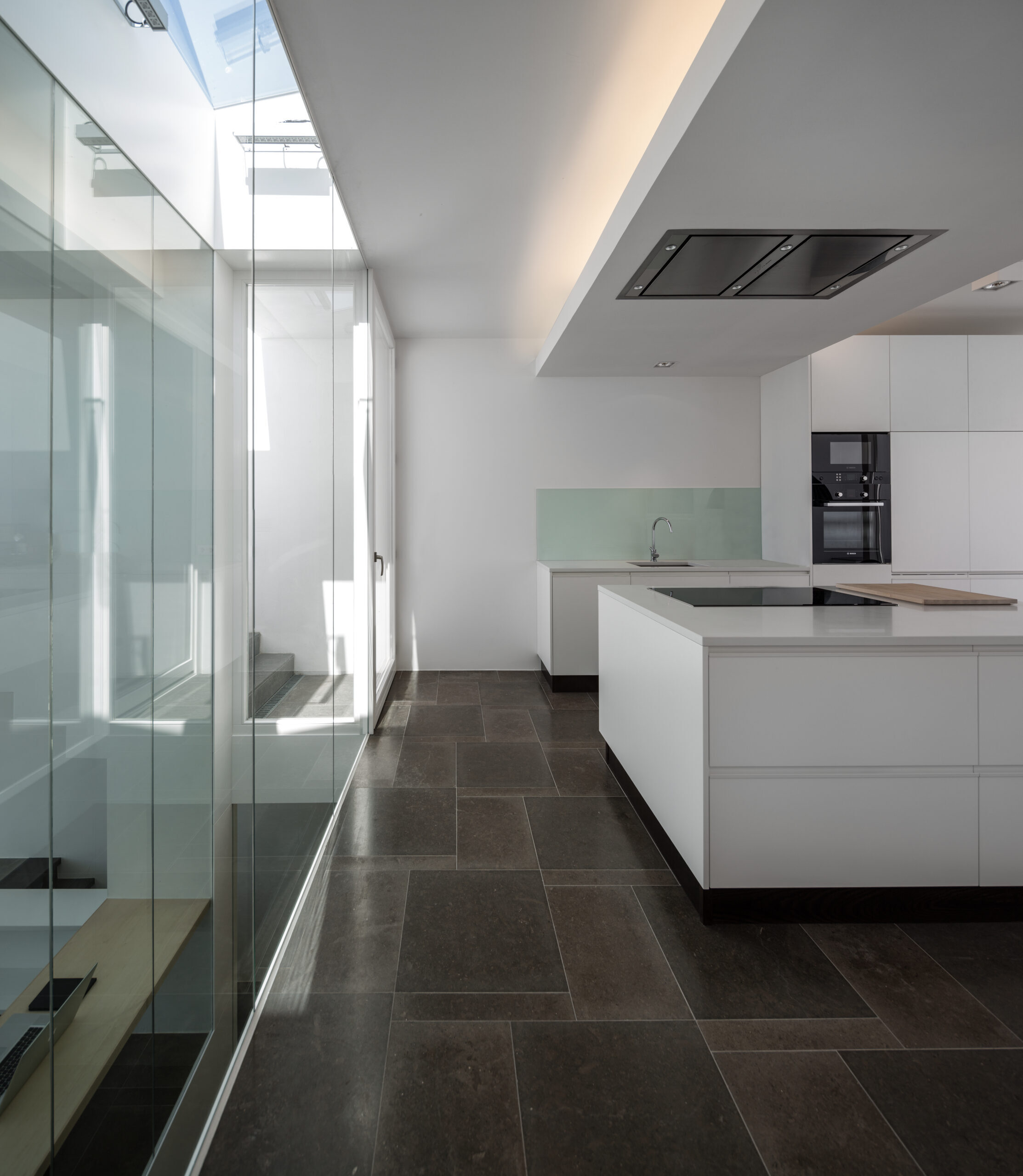 Ultramarino, la división de diseño de interiores del estudio, diseñó una cocina a medida y una serie de soluciones de almacenamiento con el fin de mantener la sobriedad del concepto.