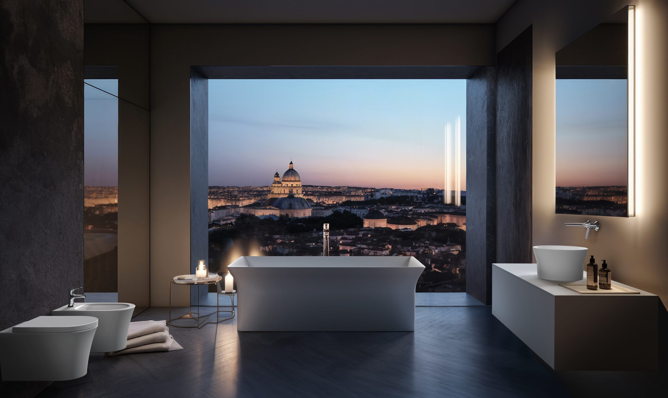 Los lavabos están disponibles en seis tamaños diferentes, entre los que destacan los modelos asimétricos que ofrecen una práctica superficie de almacenamiento. Como pieza destacada, la bañera exenta domina el espacio de cualquier cuarto de baño, sin dejar de reflejar la distinción de un relajado estilo de vida italiano.