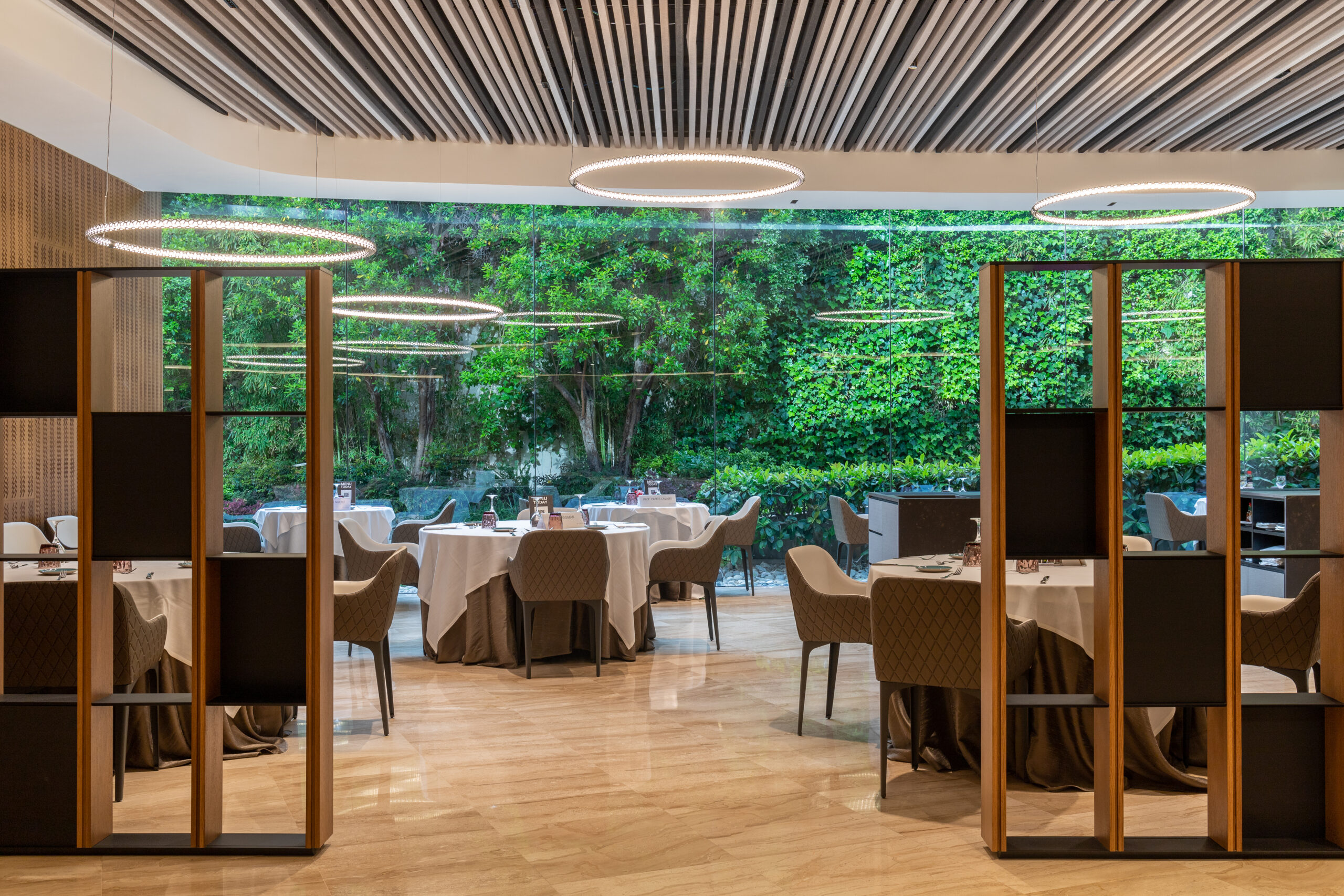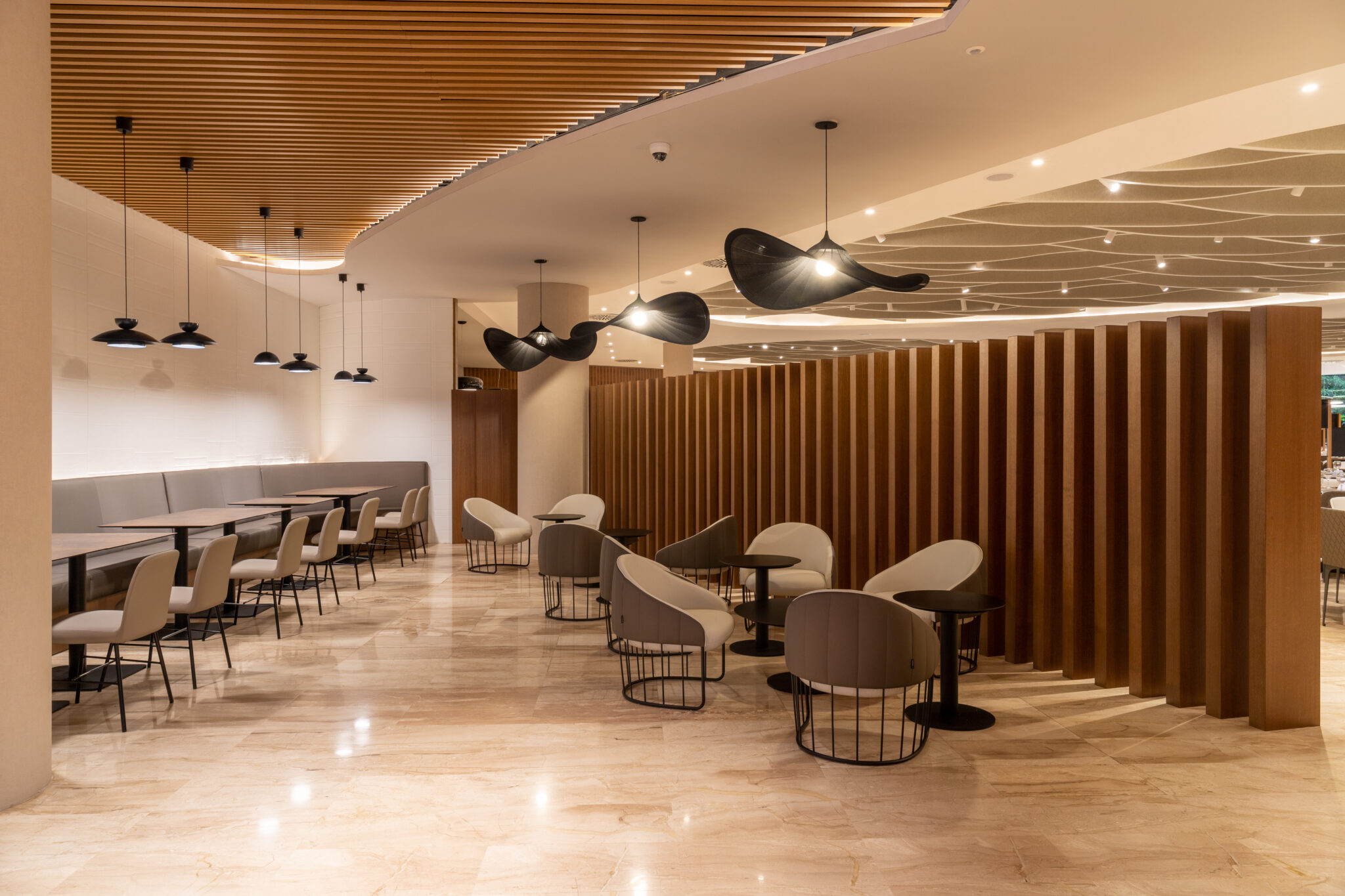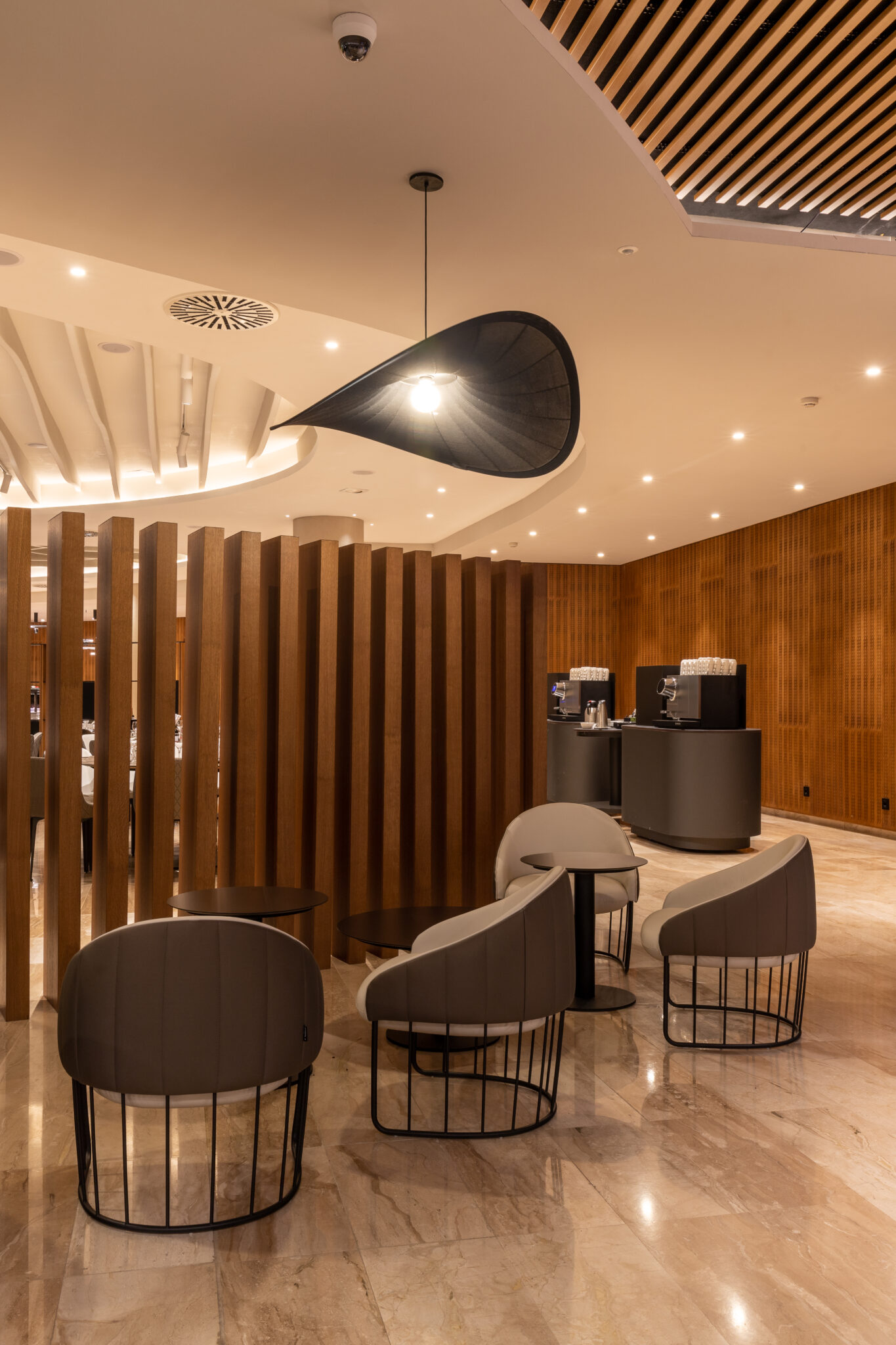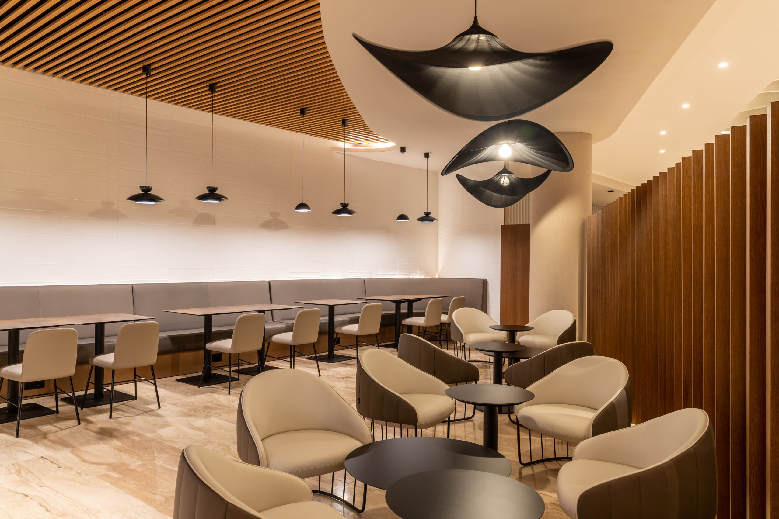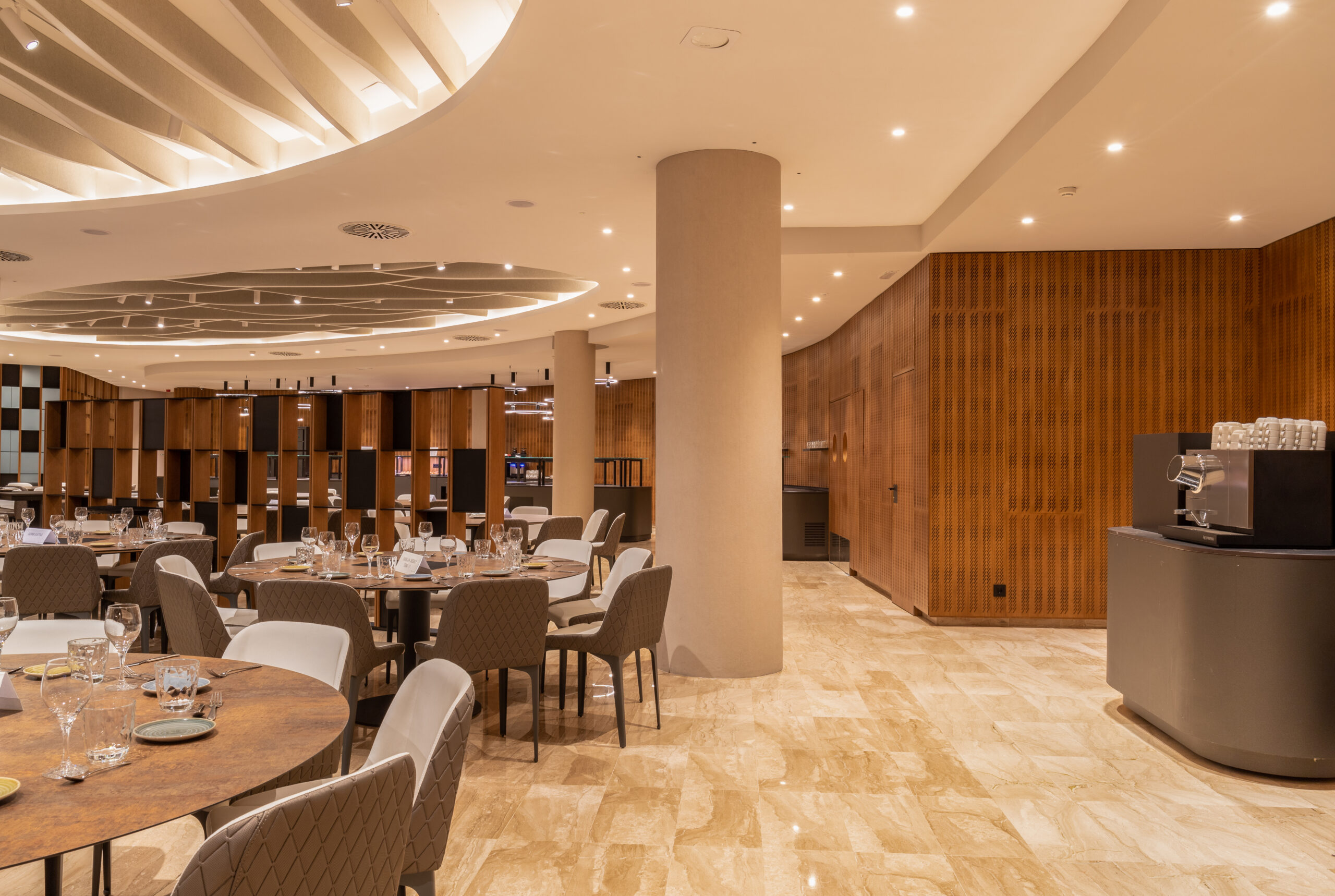 Enfrentándonos a un desafío único proporcionado por la forma circular del edificio, el proyecto no solo redefine la estética de la sala, sino que introduce un modelo de servicio vanguardista que captura la atención y el deleite de los comensales.