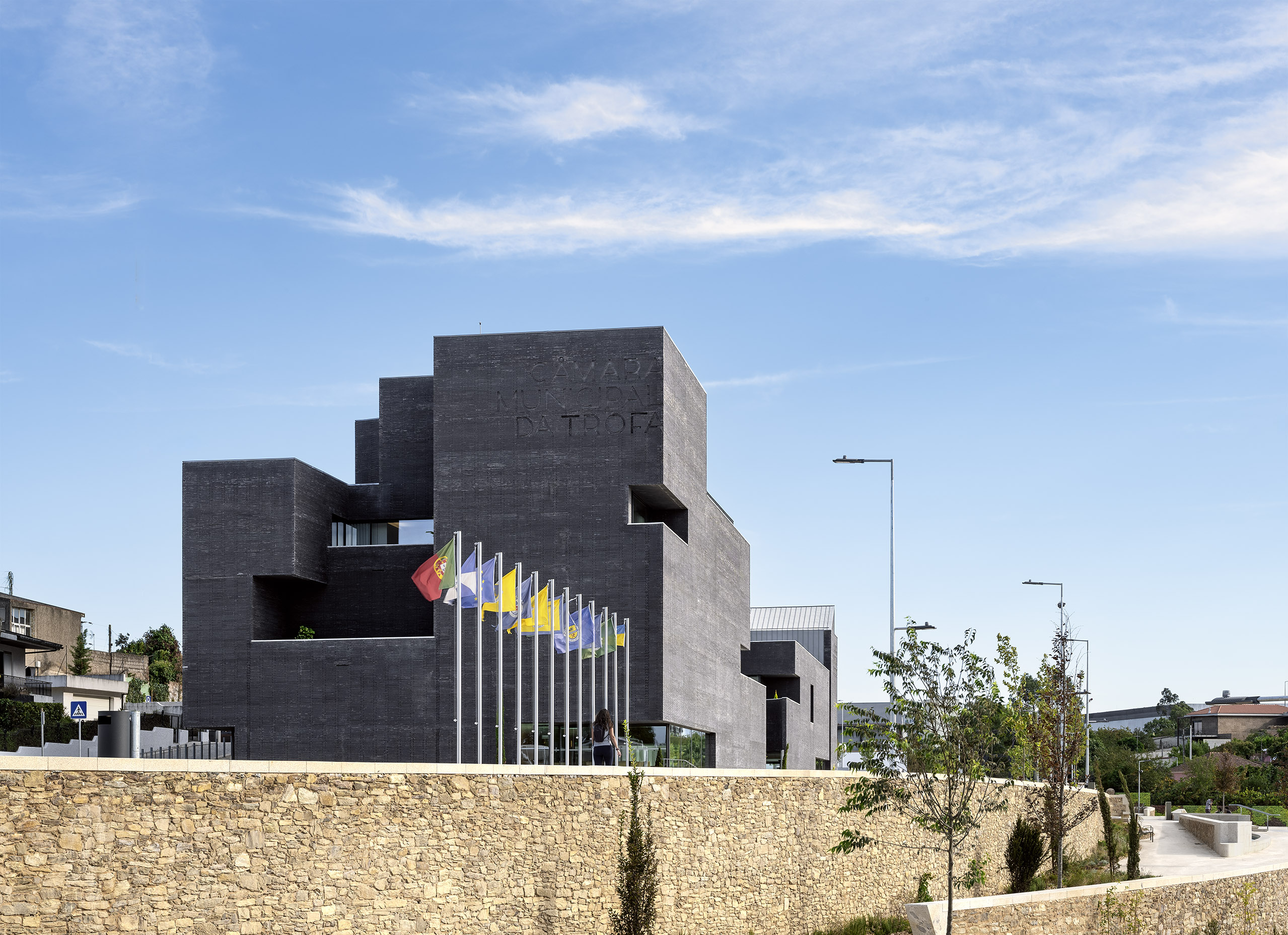 A Câmara Municipal da Trofa foi construída em betão aparente e tijolo maciço, materiais integrais que não atuam como meras camadas de acabamento, mas como parte essencial e duradoura da arquitetura. A obra rejeita materiais artificiais e aposta numa estética sóbria que remete à essência da arquitetura portuguesa: construção, espaço, escala e proporção.