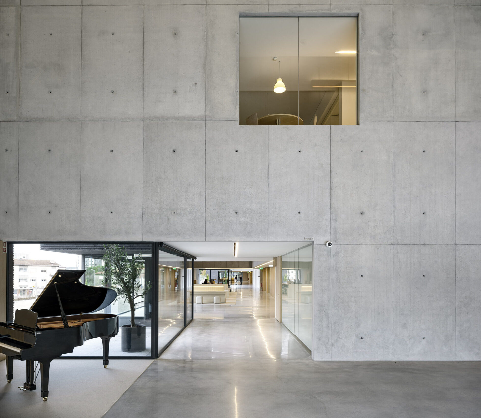 O edifício foi concebido para resistir ao tempo, tanto física como simbolicamente. Assim, propôs-se uma arquitetura serena e construtiva, baseada numa economia de meios e no respeito pelo património industrial existente. A sustentabilidade, neste caso, vai além da ecologia material ou da eficiência energética: começa na sustentabilidade económica, através do uso de materiais locais que reduzem as emissões de carbono e valorizam os recursos naturais e energéticos de proximidade.