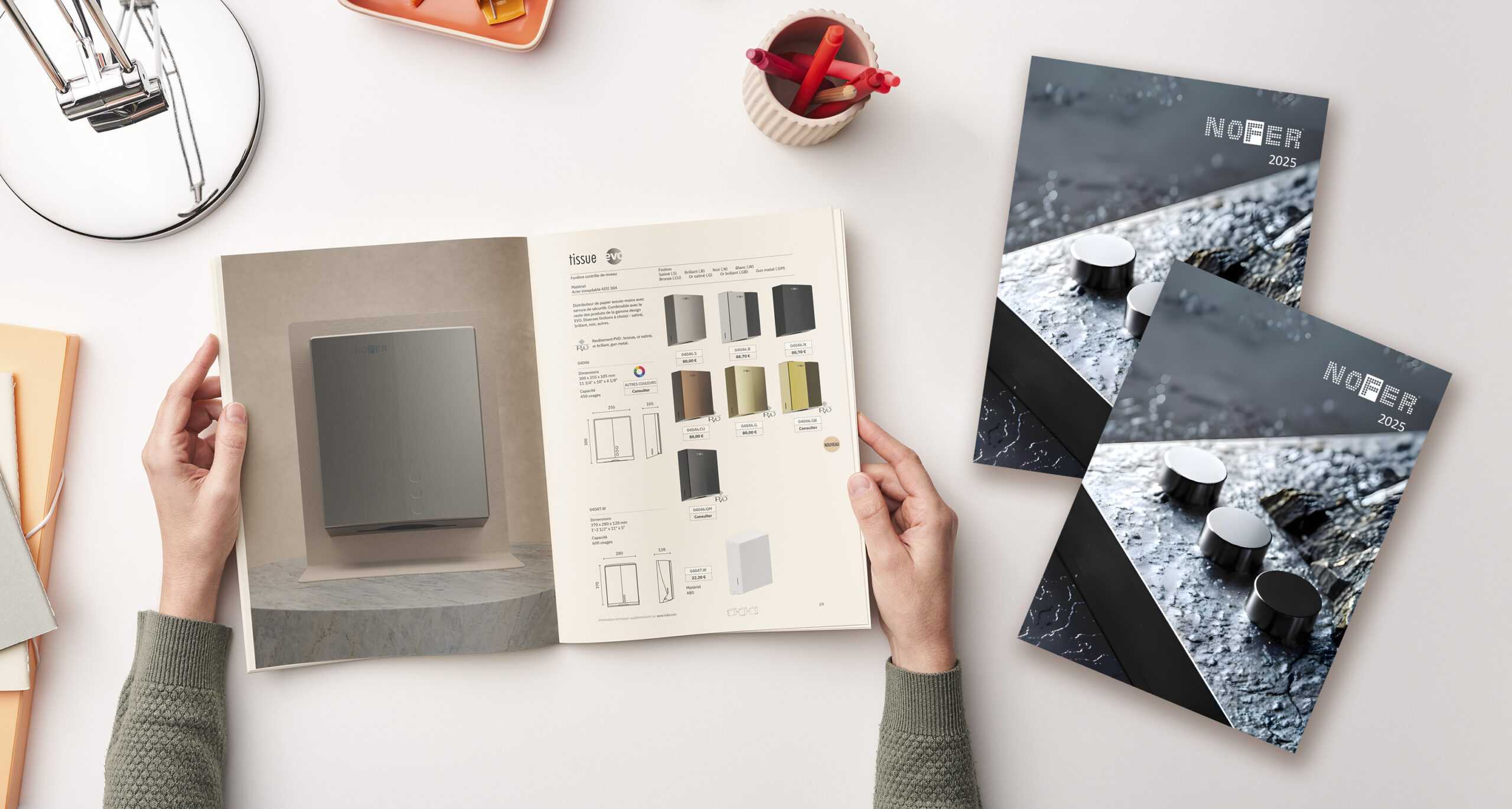 Con la línea COLOR EDITION y sus acabados en PVD —oro cepillado, oro brillo, bronce y gunmetal— NOFER da un paso más ofreciendo la posibilidad de unificar griferías, accesorios, secamanos, dispensadores y mobiliario bajo un mismo lenguaje estético.