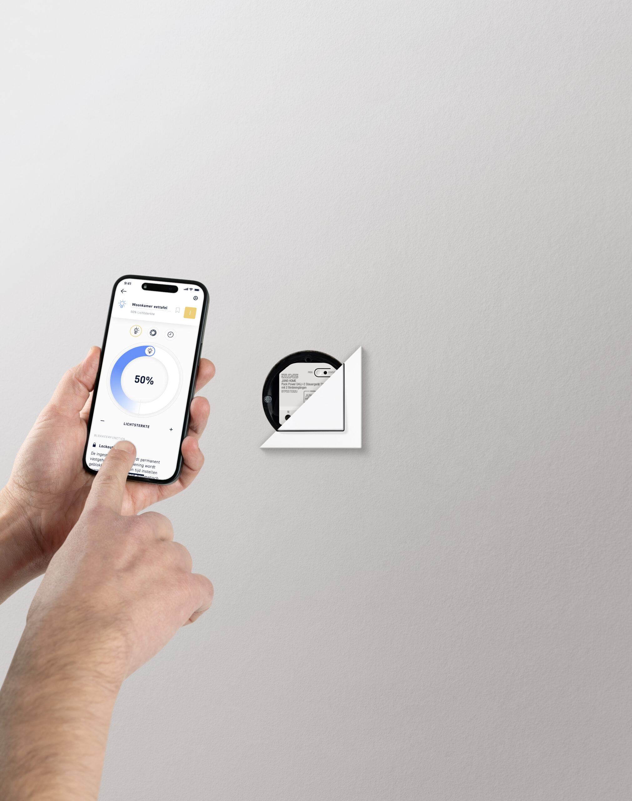 La conectividad de todo el sistema se basa en el estándar Bluetooth® Mesh, similar al utilizado por los smartphones. Esta red inalámbrica garantiza una comunicación robusta entre todos los dispositivos JUNG HOME sin necesidad de cableados adicionales, aparte de los ya instalados. Además, la transmisión inalámbrica de datos incorpora un cifrado automático que eleva los estándares de seguridad contra accesos no autorizados. Esta infraestructura es idónea para proyectos de modernización donde no se desea o no resulta viable abrir nuevas rozas o realizar reformas estructurales profundas en la instalación eléctrica ya existente.