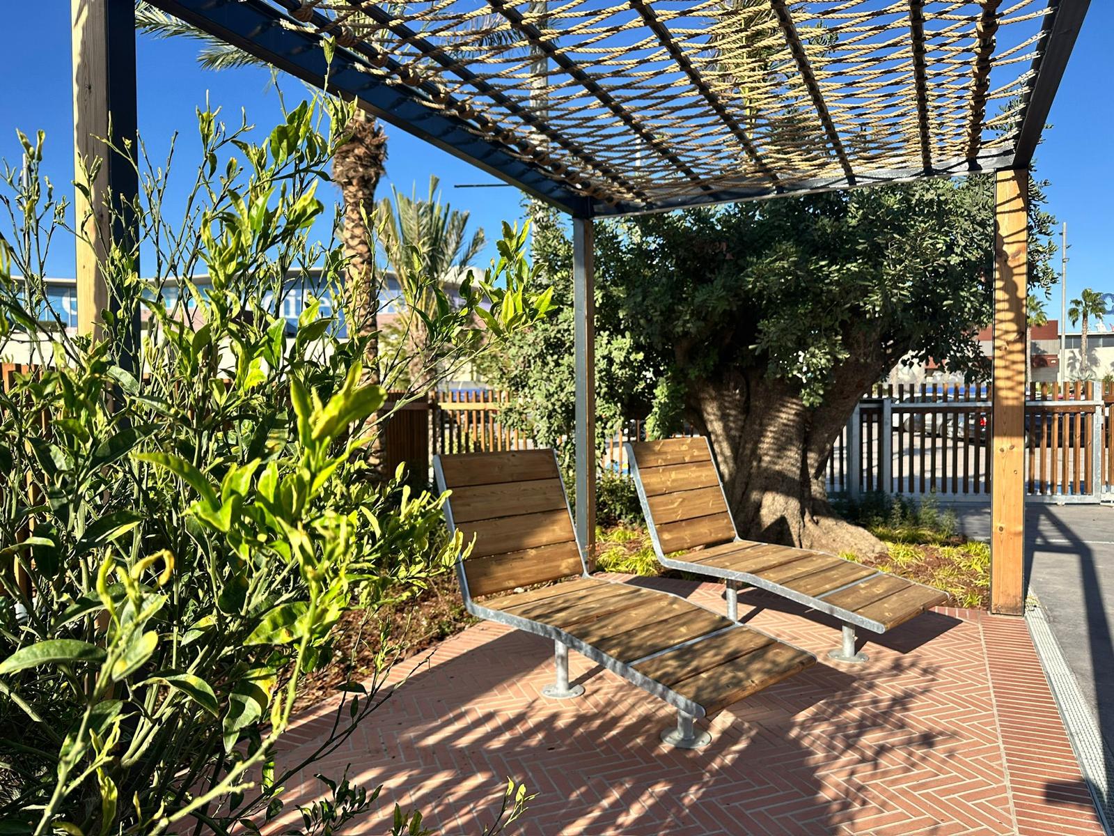 Como complemento al paisajismo, se han generado 30 nuevas zonas estanciales en sombra con pérgolas y cuidado mobiliario, y se han instalado murales de artistas urbanos como David Murcia, Ángel Torren, Kraser o Dante Arcade en una especie de museo al aire libre, además de la escultura del artista Juan Belando