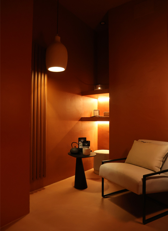 Marte es un centro especializado en masajes innovadores pensados para conectar el mundo mental con el corporal, por ello era importante crear un espacio único y diferente en el que se viviera una experiencia inmersiva y poder así sentirse parte del entorno.