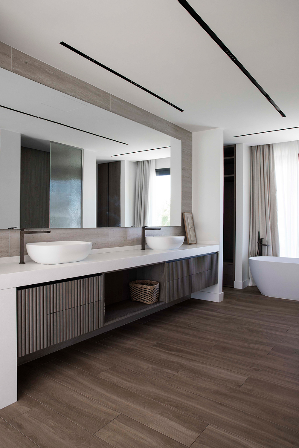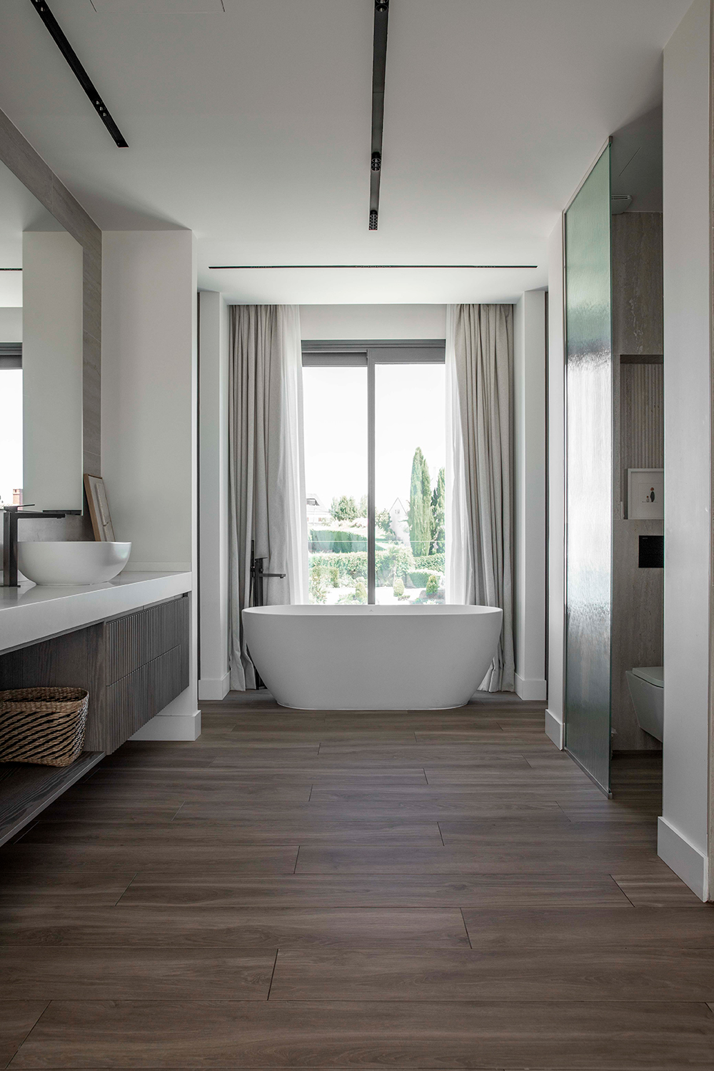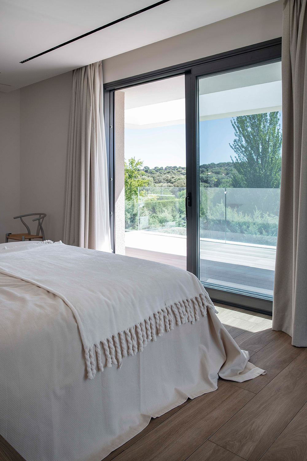 En planta primera se encuentra la Master Bedroom, con un gran vestidor y baño y con visuales privilegiadas hacia el encinar que se extienden en una terraza privada.