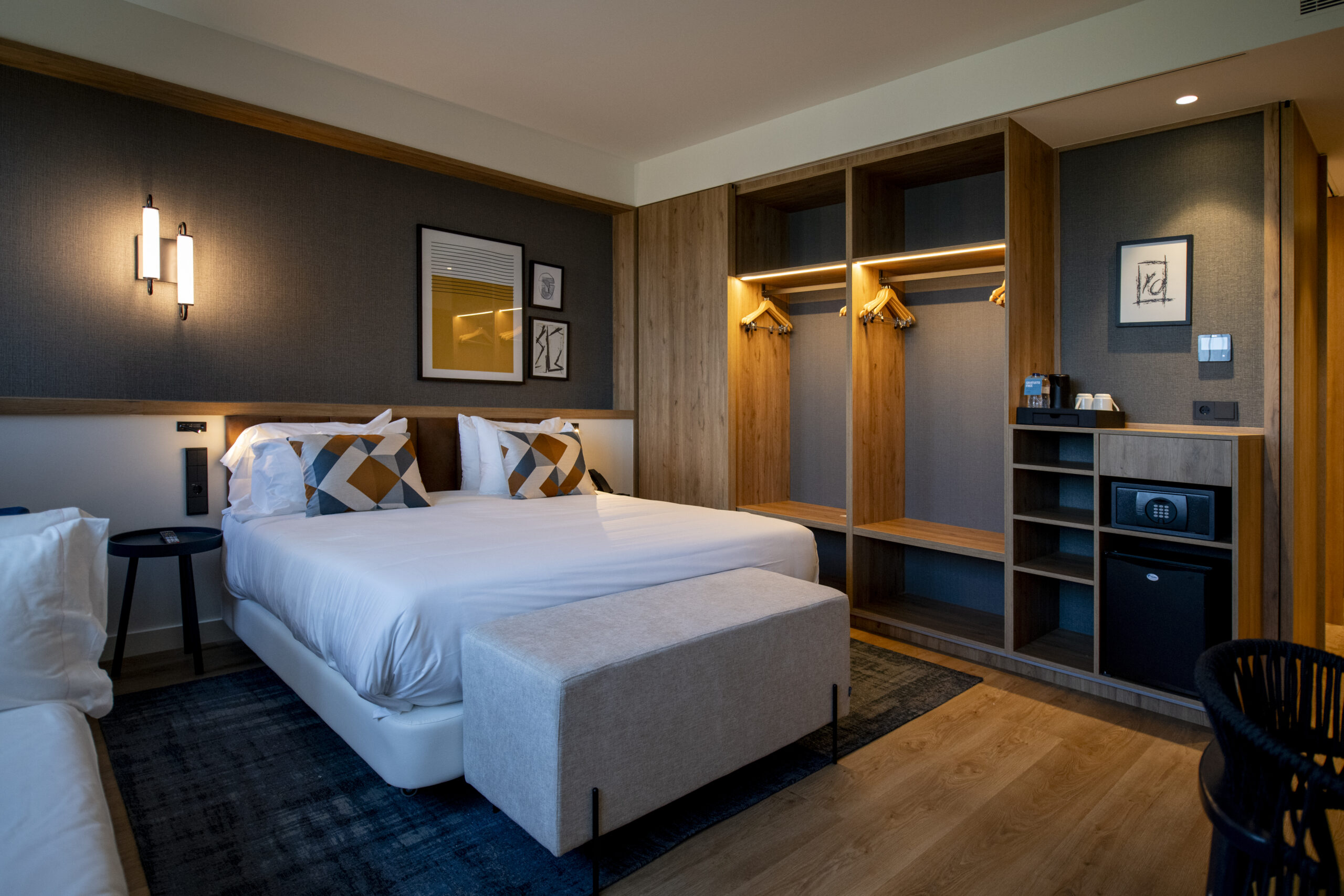 Igualmente, según comenta Juan Luis Requena, Socio Fundador de REQUENA Y PLAZA, “la repetida confianza que este grupo ha puesto en nuestro estudio es un reto que tomamos siempre con la máxima ilusión para cada encargo. Nos centramos en dar respuesta a las necesidades que nos indica el cliente, conociendo el tipo de usuario y las líneas estéticas y funcionales de cada marca concreta. En este caso, para las habitaciones y las zonas comunes, hemos diseñado una decoración que apuesta por usos cambiantes según el momento, más formal durante el día, y más modernos y desenfadados por la noche. Hay tiempo para el trabajo en espacios para eventos y reuniones, pero también para el relax y descanso en su oferta del fitness center y de su magnífica piscina. En resumen, un lujo discreto que se percibe desde el lobby del hotel hasta su espectacular azotea”.