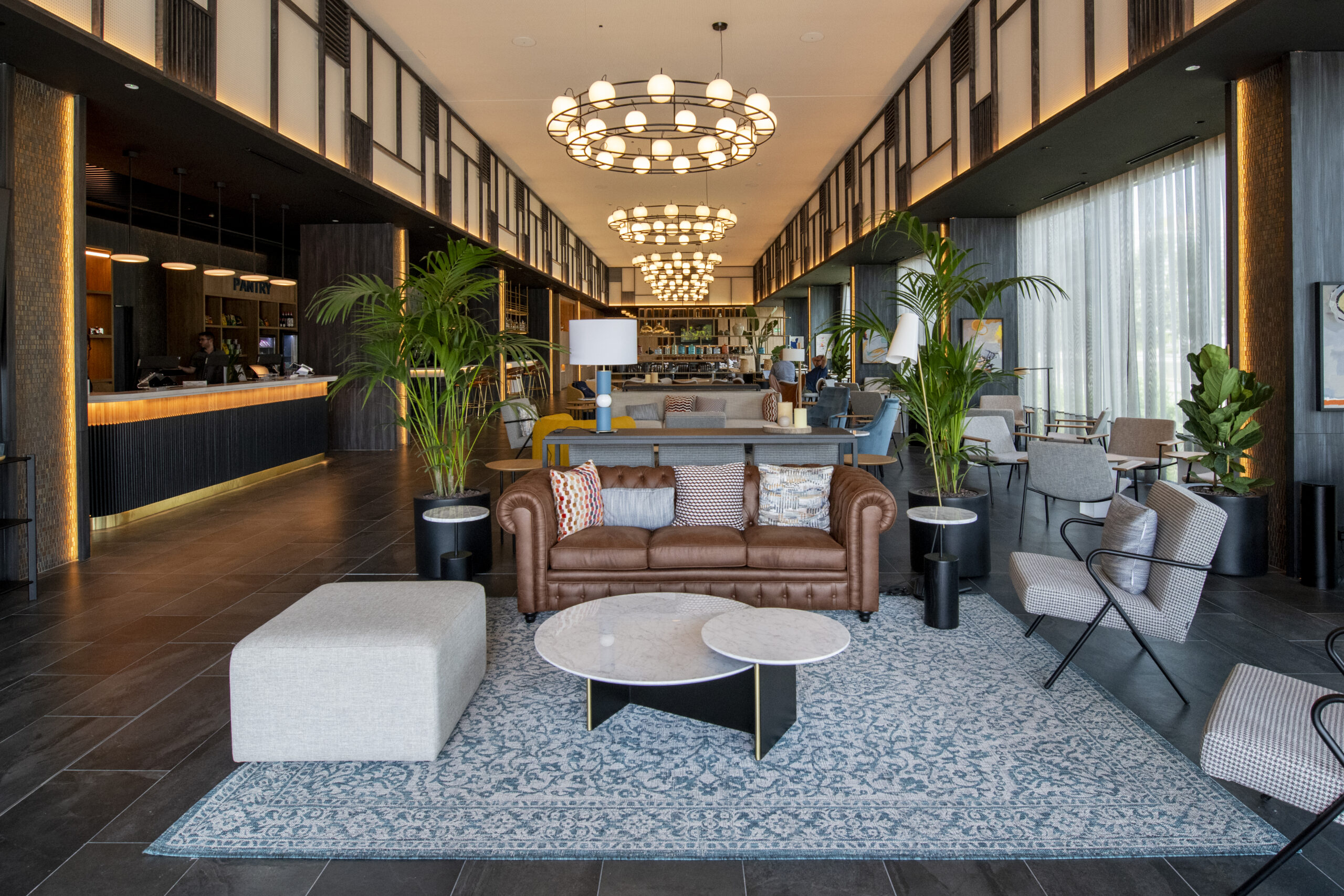 Su Business Center y los espacios del lobby están diseñados como un escenario funcional y contemporáneo de reuniones y encuentros de negocios, con reminiscencias entre los años 20 y 50