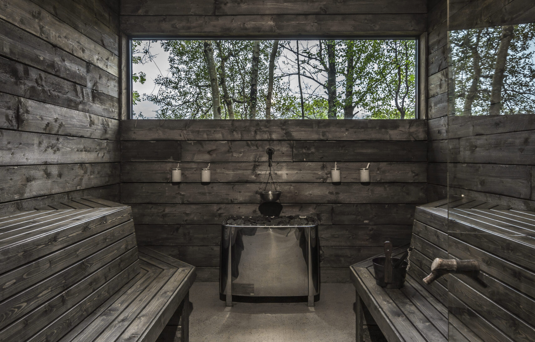 Com sorte, o dia começa com o sol a tentar atravessar a névoa, que por instantes transforma as árvores em figuras fantásticas, quase como monstros adormecidos. À medida que o nevoeiro se dissipa, revelam-se o lago, as colinas que marcam a paisagem e os volumes que compõem o spa, concebidos a partir de experimentações criativas em torno de um cubo de quatro águas, que orientou toda a composição arquitetónica.
