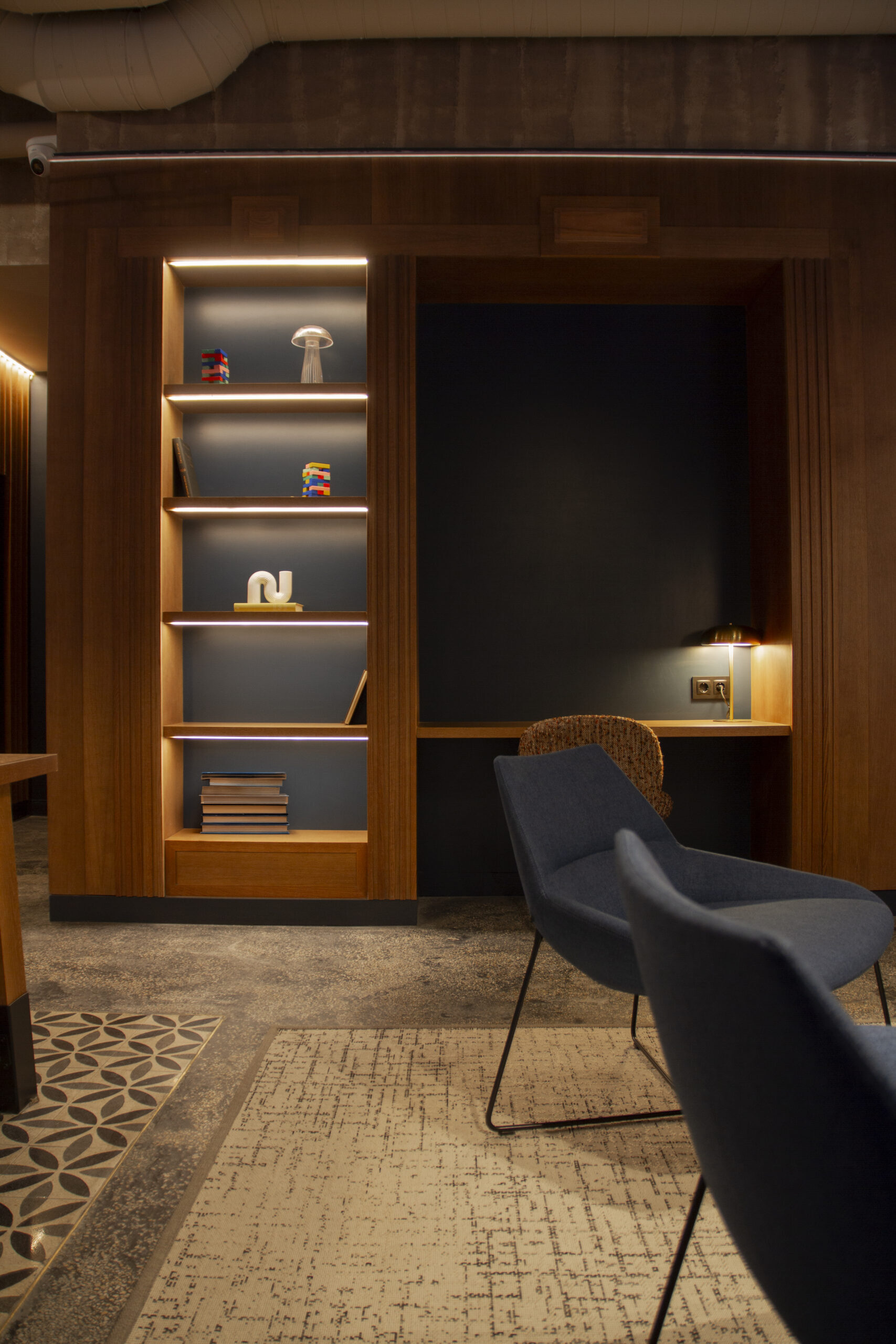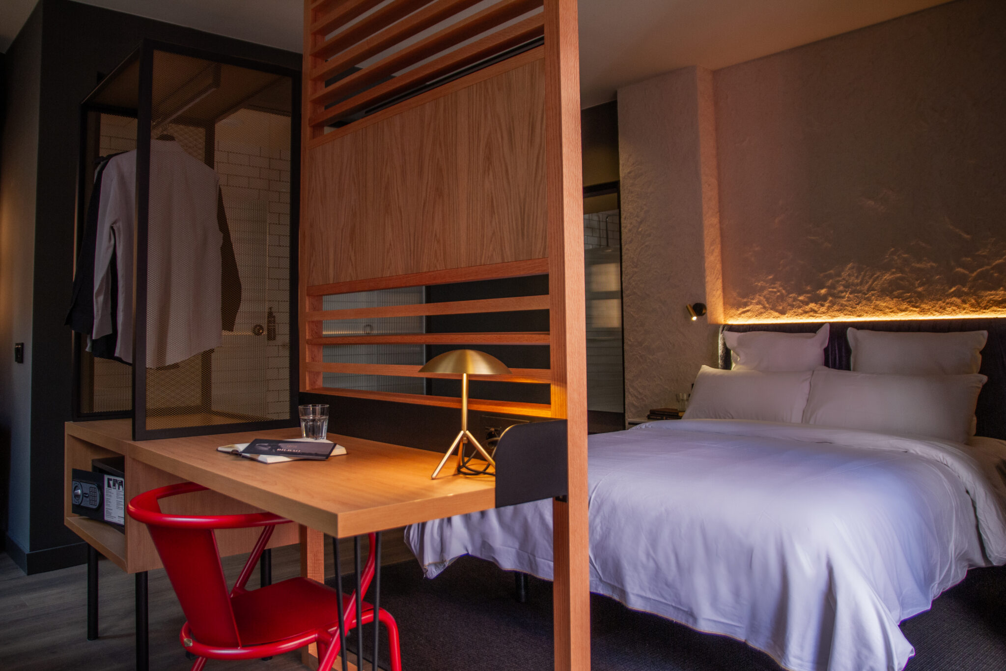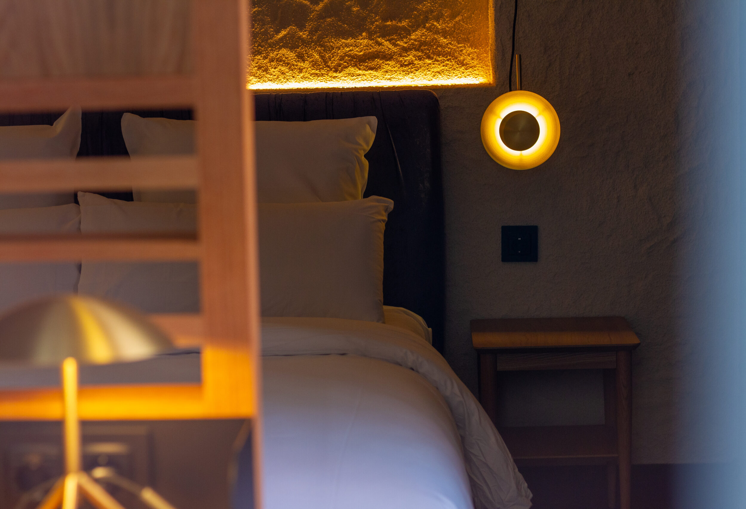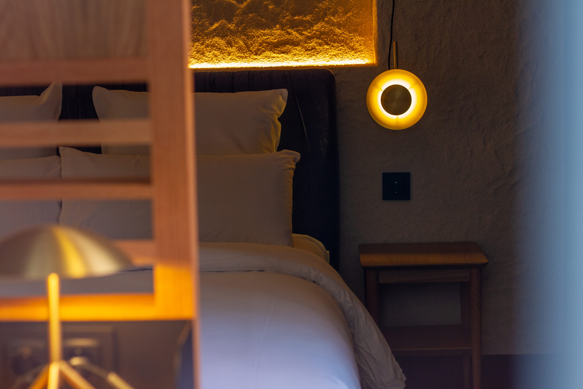 La iluminación juega un papel central en este proyecto: se ha diseñado un sistema de luz natural que, junto con una iluminación cuidadosamente estudiada, resalta texturas y materiales, y genera contrastes que potencian la sensación de bienestar. Cada rincón del hotel invita a disfrutar de un ambiente relajado, perfecto para el descanso y la desconexión, sin sacrificar la elegancia y la funcionalidad.