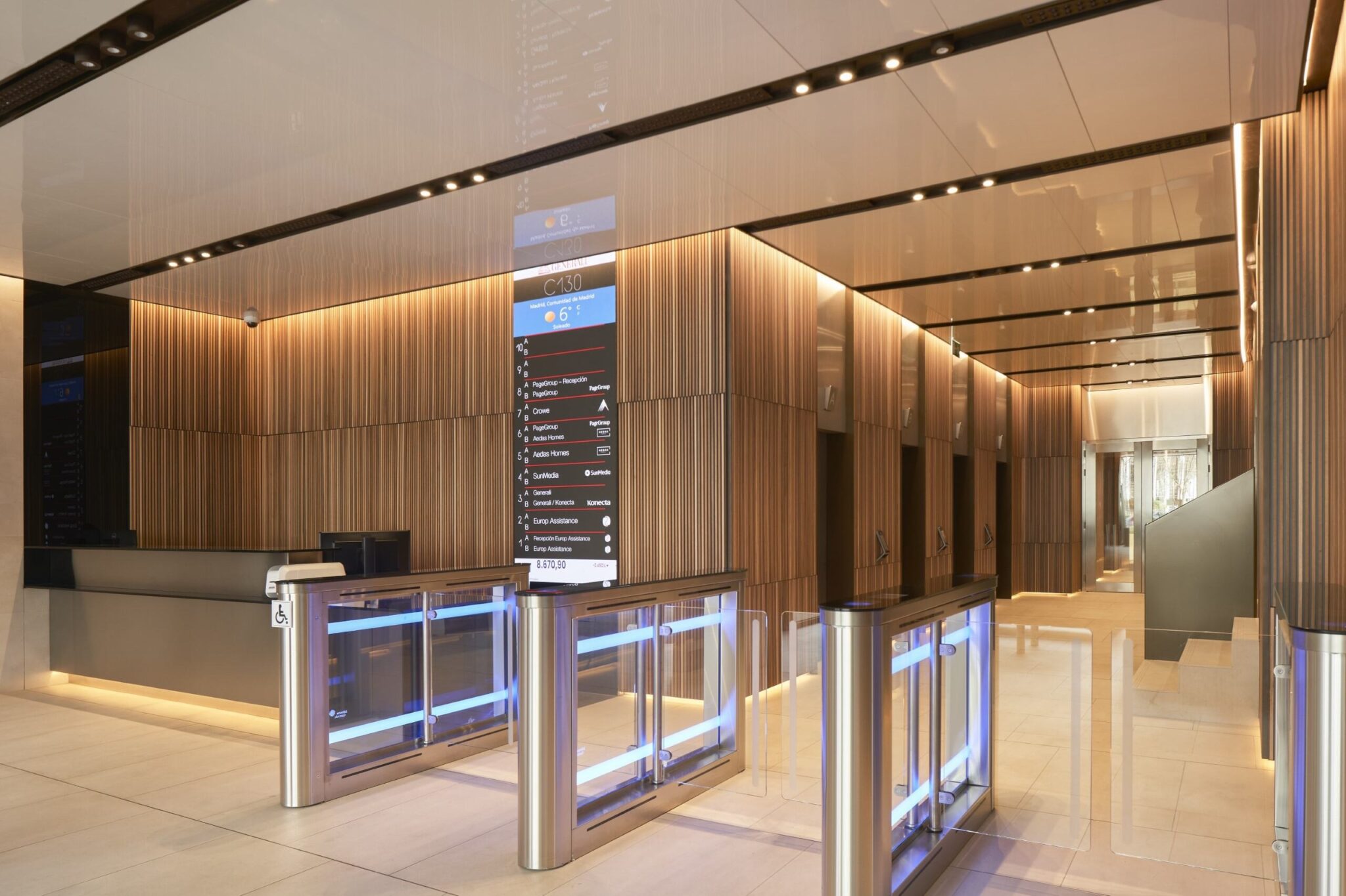 El nuevo diseño de la fachada de muro cortina destaca por su estética moderna y funcional. La estructura acristalada, orientada al oeste, maximiza la entrada de luz natural sin comprometer el confort térmico de los interiores. Esto se ha logrado gracias al uso de vidrio doble laminar con baja emisividad y control solar, que reduce significativamente las ganancias de calor y optimiza el aislamiento acústico, un aspecto crucial dado que el edificio se encuentra en una de las avenidas más transitadas de la capital.