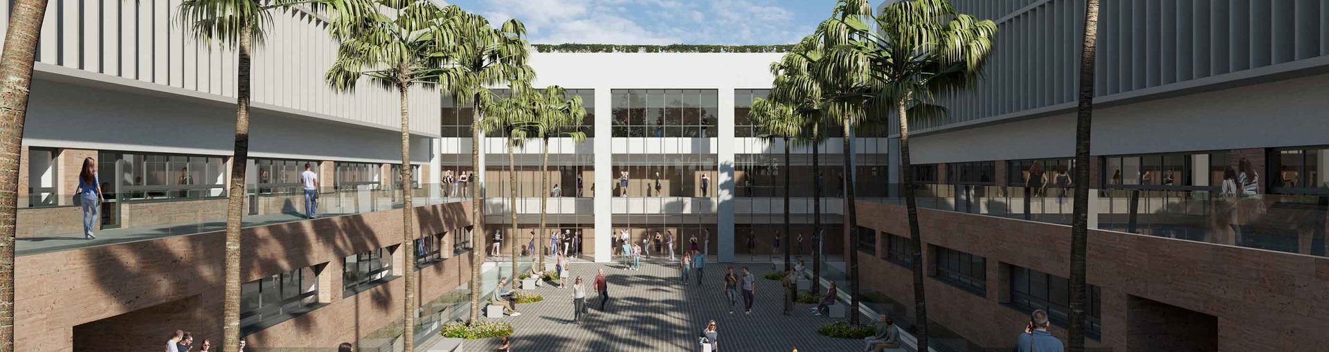 El edificio principal se dividirá en cinco bloques conectados que contarán con dos plantas bajo rasante y tres alturas. La zona de circulación se encuentra en el eje del cuerpo principal, conectando todo el conjunto: aulas, laboratorios y jardines.