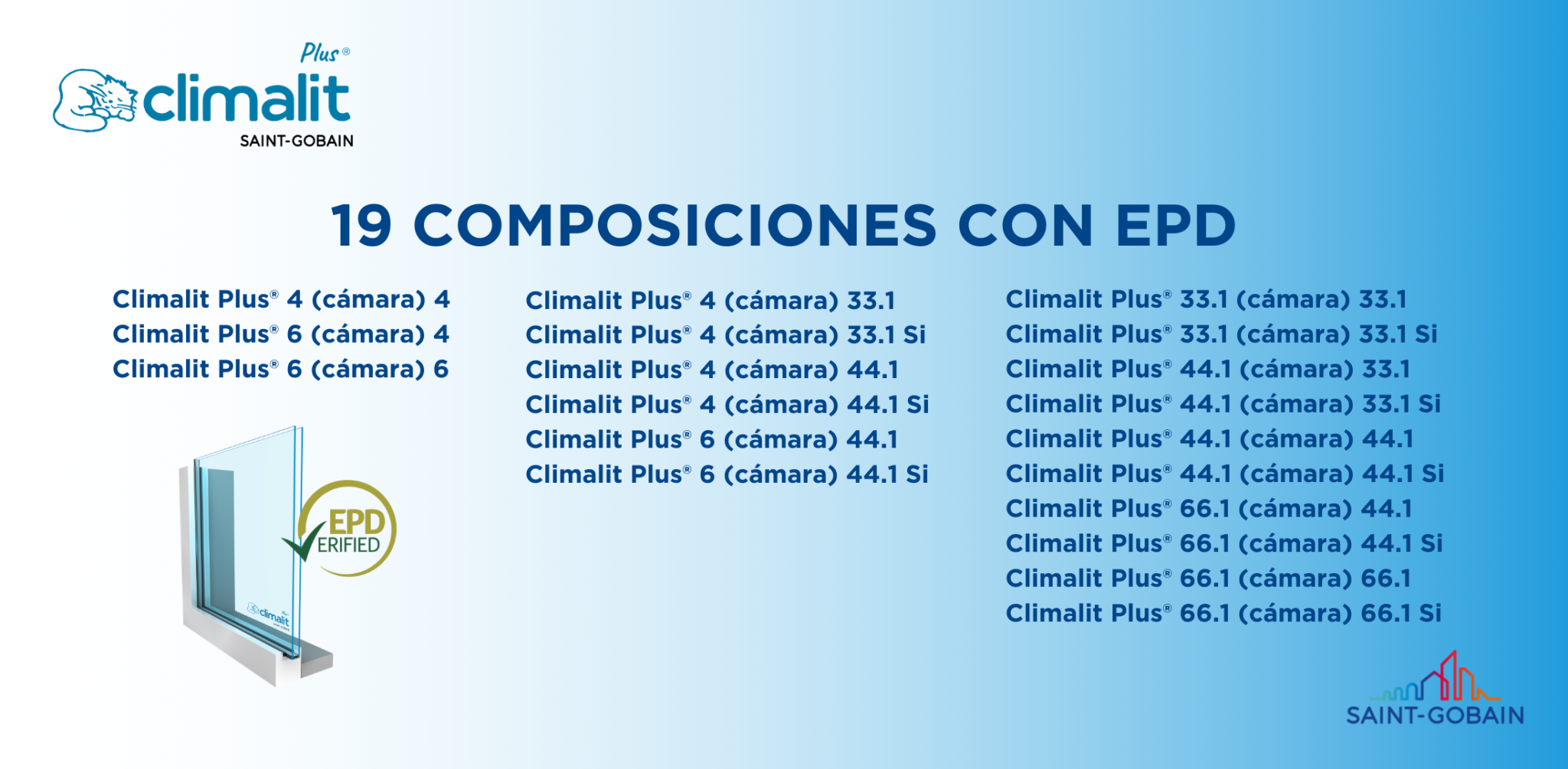 Saint-Gobain Glass, compañía líder en soluciones de vidrio plano para fachadas, ventanas y diseño de interiores, presenta al mercado las nuevas EPDs (Declaración Ambiental de Producto) de Climalit Plus®, su marca líder en acristalamientos para ventanas, para 19 composiciones de dobles acristalamientos.