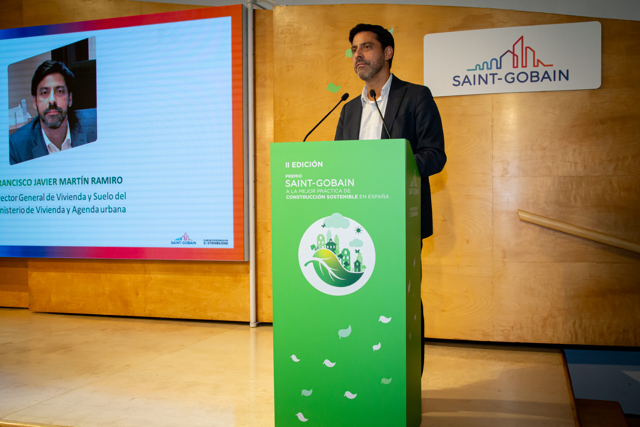 Francisco Javier Martín Ramiro, Director General de Vivienda y Suelo del Ministerio de Vivienda y Agenda Urbana, mostró su apoyo a los premios por segundo año consecutivo. Durante su intervención, destacó la necesidad de que la industria de la construcción tome la iniciativa en materia de sostenibilidad y economía circular dentro del sector.
