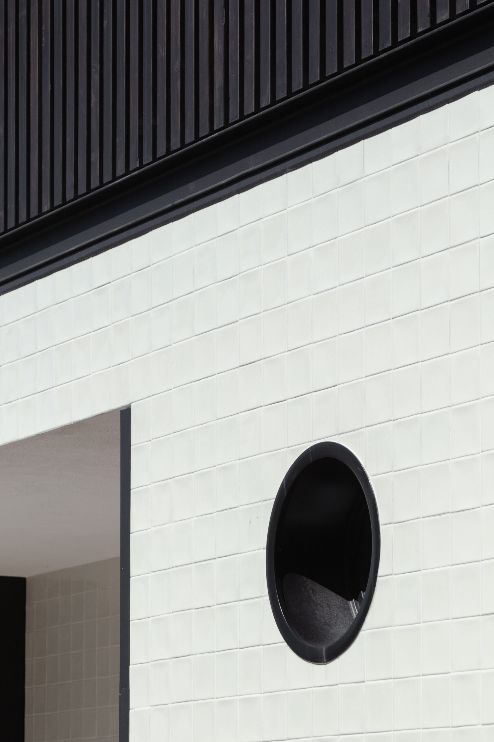 Num gesto contido e deliberado, o novo volume recua ligeiramente no alinhamento da rua, afirmando-se com respeito e escuta. O diálogo estabelece-se sem mimetismos literais, prolongando o legado existente sem o antagonizar. O nicho técnico sob um generoso óculo cita diretamente a singular janela redonda da casa de Silva Rocha, reinterpretando-a num vocabulário atual.