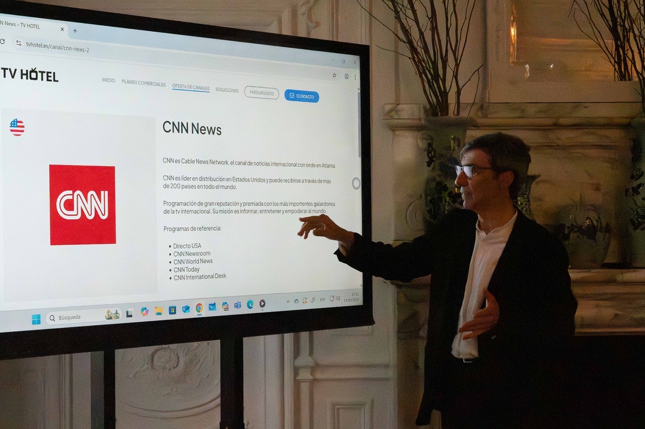 Se presenta TVHOTEL, la nueva plataforma de televisión internacional para el mercado mayorista dirigida al sector hotelero de nuestro país por parte de Pablo Romero, CEO TVHOTEL y Natasha Raynor, VP Sales EMEA de CNN. Cerca de 100 millones de turistas al año son espectadores de televisión en una oferta de más de 35.000 hoteles en España. El turista espectador tiene una motivación muy específica a la hora de usar la televisión, o bien busca información que le permita estar en contacto con la actualidad, tanto de su país de origen como en general; o bien, en el caso de los turistas vacacionales, busca una opción de entretenimiento en su idioma, eligiendo su televisión de cercanía, sus programas habituales y sus caras conocidas.